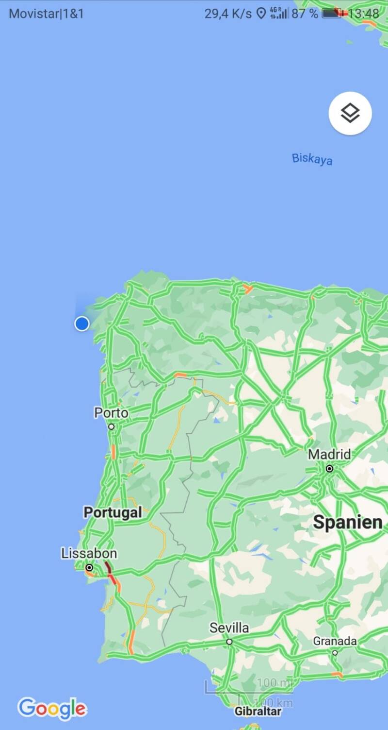 Je weiter wir die letzten Tage nach Norden kamen, desto kühler wurde es, wobei kühl eigentlich das falsche Wort ist, es wurde angenehmer. Die Bullenhitze beim Runterfahren an der Mittelmeerküste hält ja kein Mensch aus. Hier ist es sehr viel milder. Das sieht man auch an der Landschaft ganz deutlich. Es gibt Wiesen und richtige Bäume und Wälder. Ja, tatsächlich. Nicht nur staubigen, trockenen Boden mit diesem blassen Dörrgras. Das ist dann wohl der Unterschied zwischen atlantischem und mediterranem Klima. Als wir Richtung Kap unterwegs waren, musste ich mir immer wieder sagen, wir sind in Spanien. Landschaftlich und vom Wetter her hätte ich eher gesagt, wir sind in Norwegen oder Kanada.