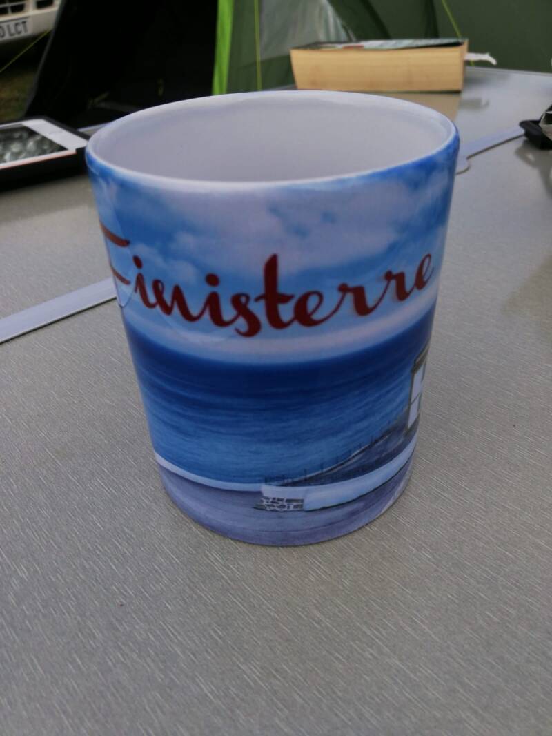 Sind wir damit auch Pilger? Wohl eher nicht. Am Kap tummeln sich aber auch sehr, sehr viele Nicht-Pilger. Inzwischen ist das eine Touristenattraktion, die von Radlern (obwohl, es gibt ja auch Radl-Pilger), Autofahrern (wie wir) und Campern besucht wird. Viel gibt’s dort nicht wirklich. Den Leuchtturm, ein kleines Restaurant und einen Souvenirshop. Da ich vor ein paar Tagen eine unserer Kaffeetassen fallenlassen habe, musste ich zuschlagen.