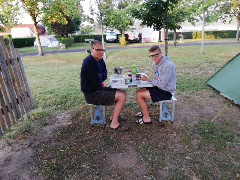 12 Grad. Die hatte es heute Morgen, als wir aus dem Zelt gekrochen sind. War ganz schön schnucklig kalt. Frühstück ging nur mit Pullover.
