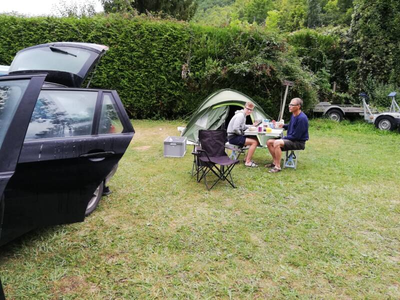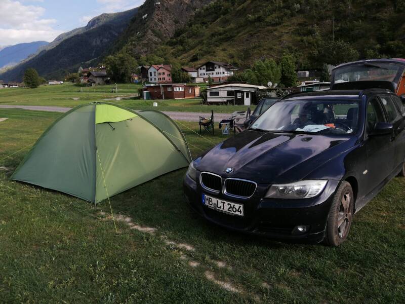 Nach dem Abstieg hatten wir noch 3 Stunden Fahrt in die Schweiz. Dort sitzen wir auf einem Campingplatz im Rhonetal.